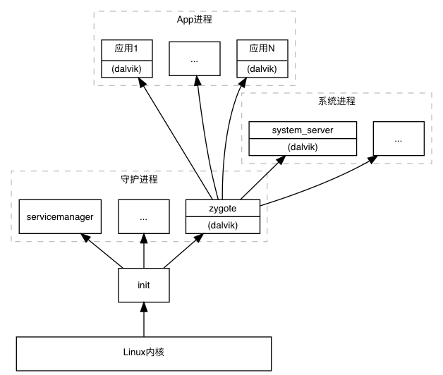 App进程由其父进程zygote创建(fork)。通过adb shell ps