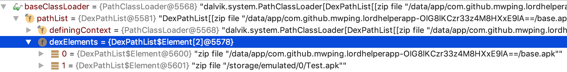 Object newDexElements = getDexElements(getPathList(dexClassLoader));